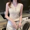 Women's Ribbed Knit Tank Top Sleeveless V Neck Scalloped Trim Button Decor Slim Fit Crop Top — купить товар онлайн с бесплатной доставкой по всему миру!