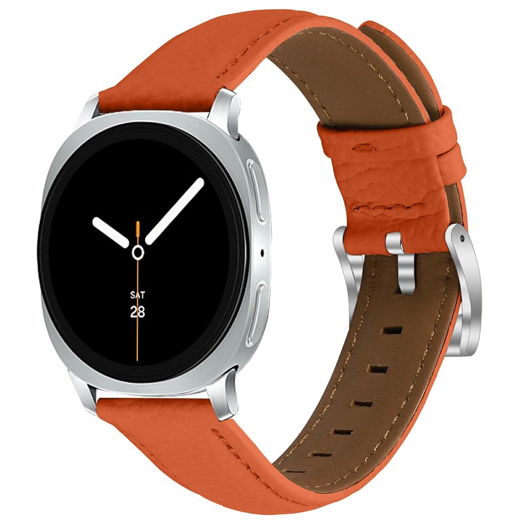 Litchi Texture Genuine Cow Leather Strap for Samsung Galaxy Watch8 Classic 46mm/Watch8 44mm/40mm Pointed-End Watch Band with Silver Buckle