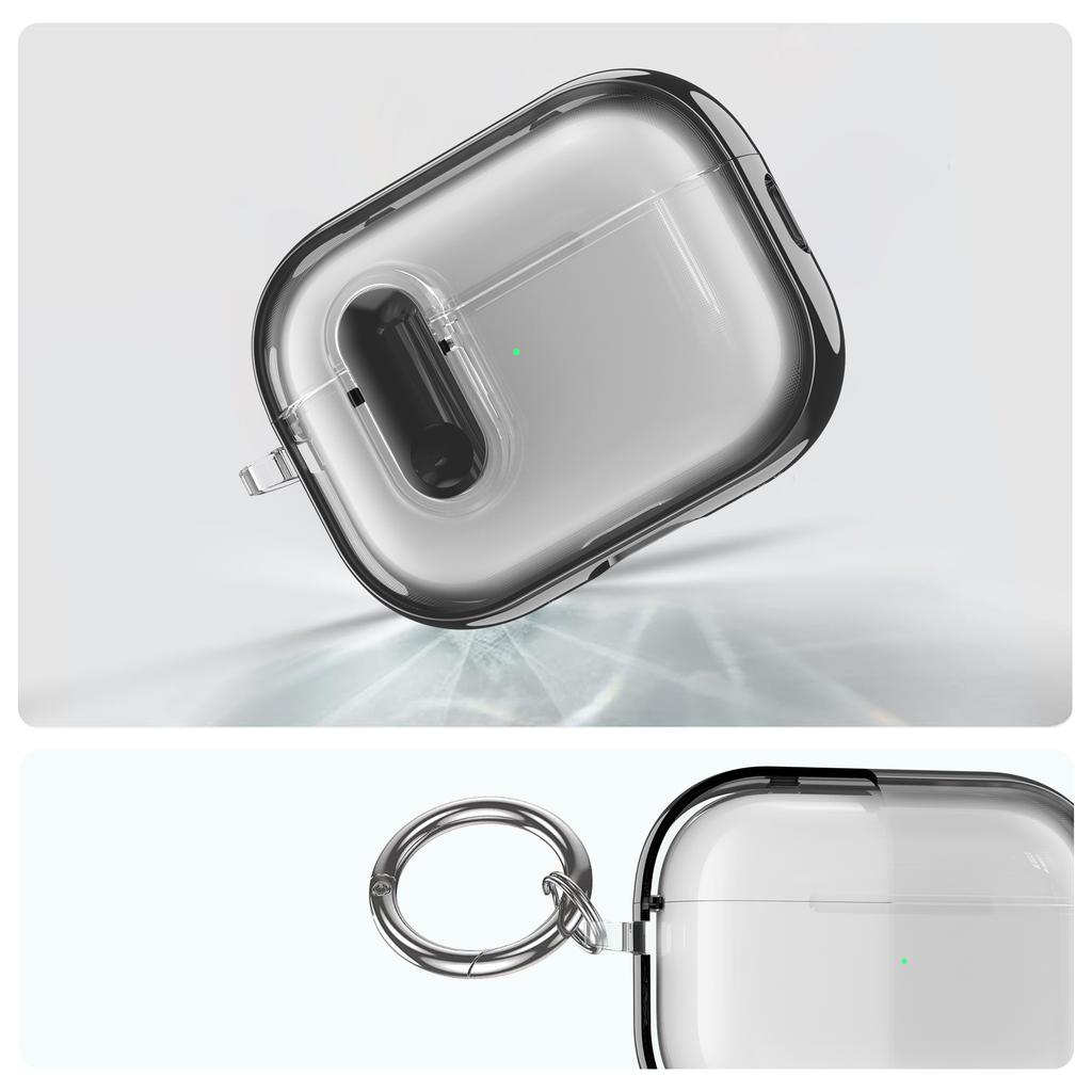 For Apple AirPods Pro / Pro 2 Case Clear Electroplated TPU PC Earbuds Cover with Lock Clasp / Carabiner — купить товар онлайн с бесплатной доставкой по всему миру!