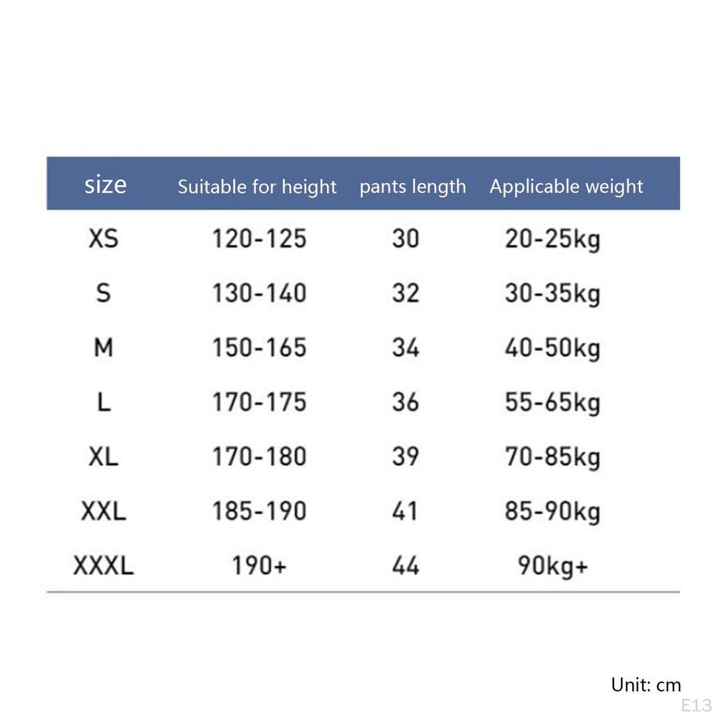 - XXXL: Подходит для роста 190+, длина брюк 44, допустимый вес 90кг+