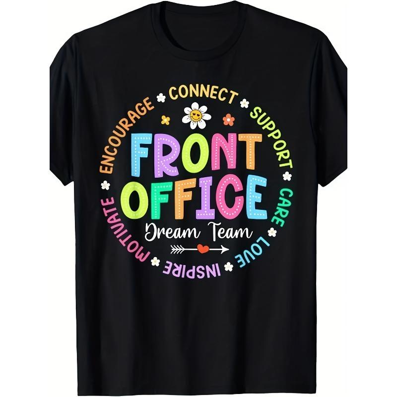 European sizes T-Shirt - Retro Receptionist Design with Front Desk Motivational Words (Connect, Support, Encourage) — купить товар онлайн с бесплатной доставкой по всему миру!