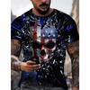 Летняя мужская футболка с принтом ретро-флага, 3D-черепом, круглым вырезом, коротким рукавом, повседневная дышащая мужская футболка большого размера, популярная модель