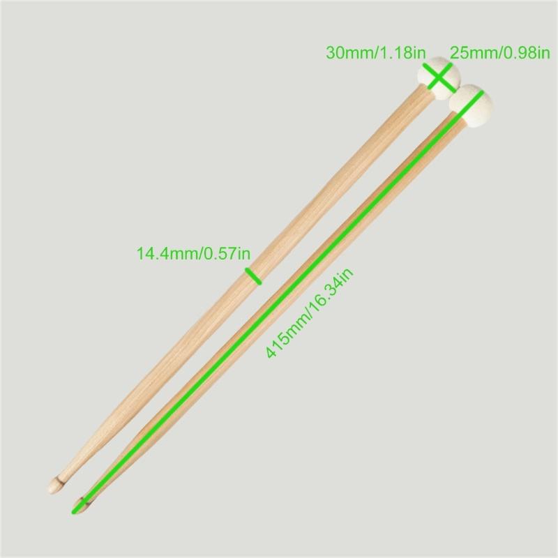 2Pcs Felt Head Drum Sticks Timpani Drumsticks Percussion Instrument Double Head Drum Hammer Drum Practice Playing Tool