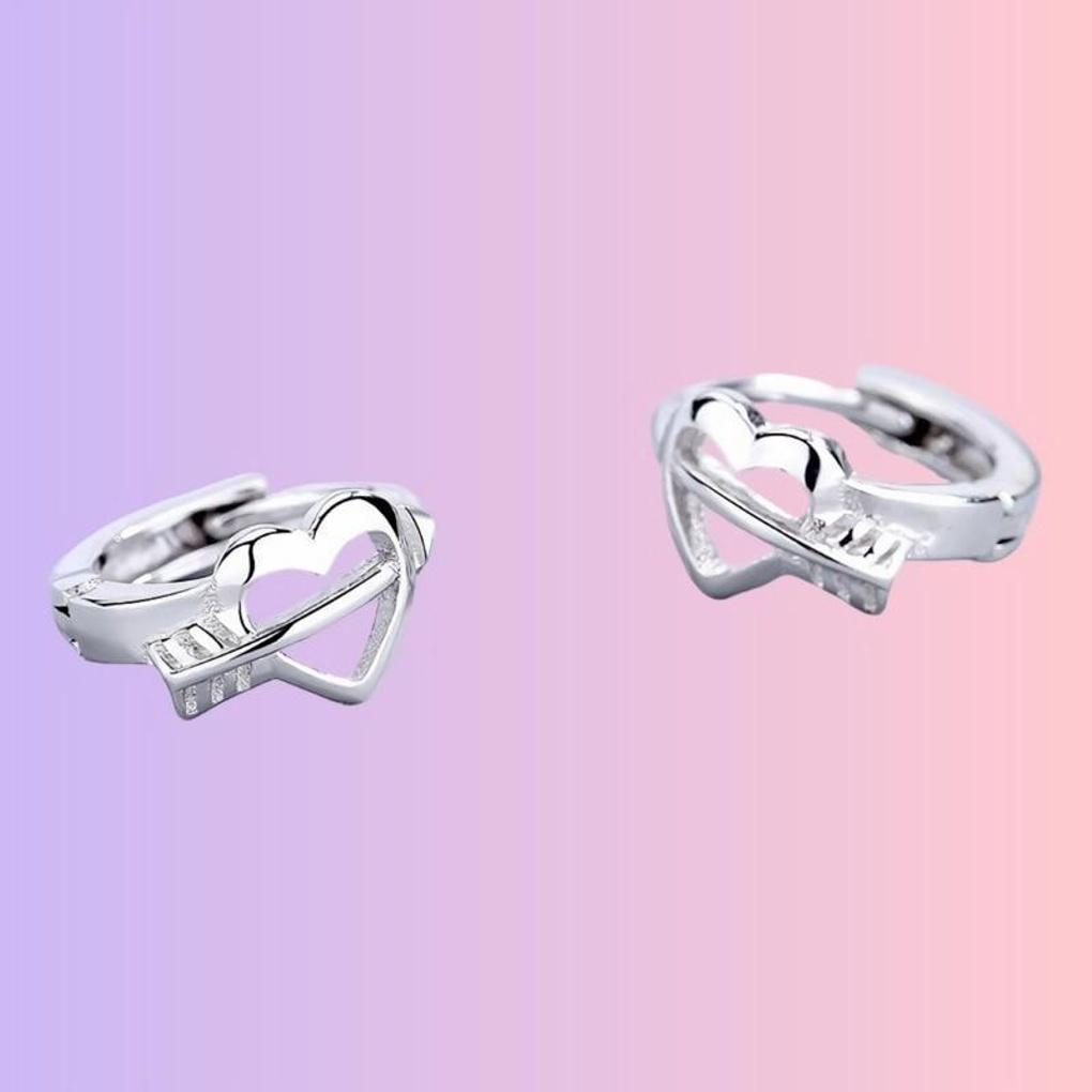 Женские Серьги-Кольца Мини Стрела Сердце из Серебра 925 пробы