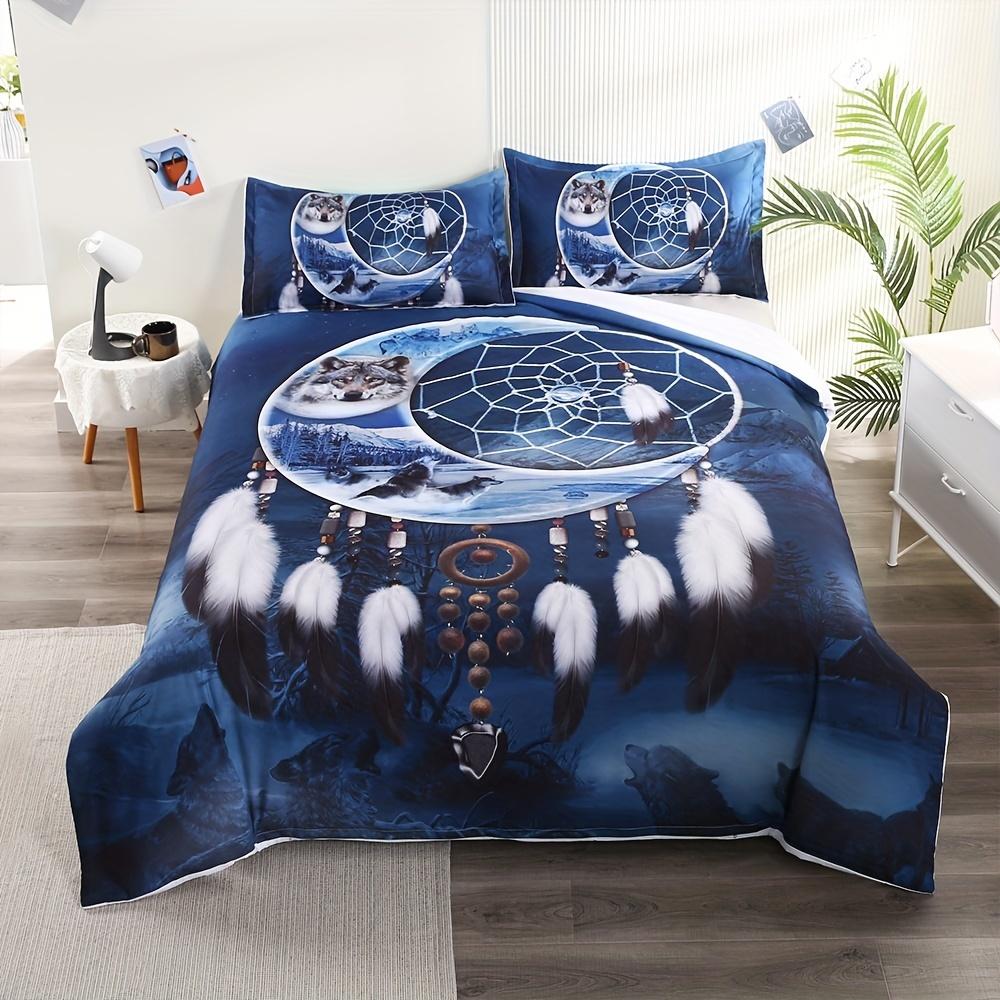 3pcs Moon Wolf Printed Bedding Dreamcatcher National Style Guest Room Duvet Cover Set (1pc* Duvet Cover + 2pcs Pillowcase) — купить товар онлайн с бесплатной доставкой по всему миру!