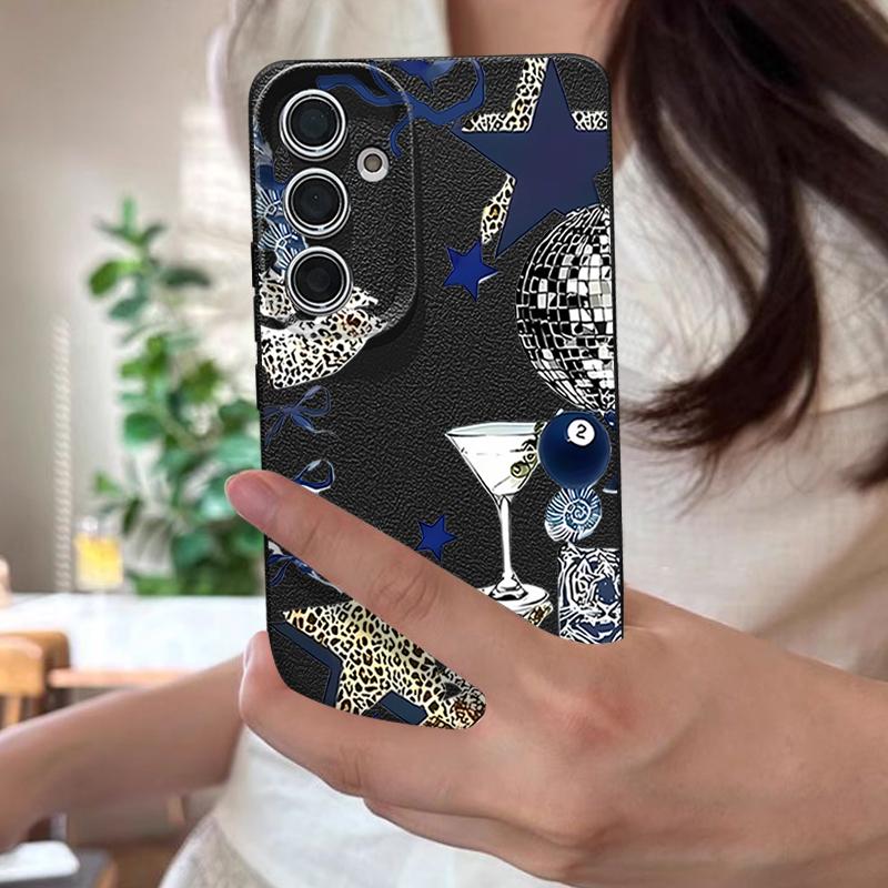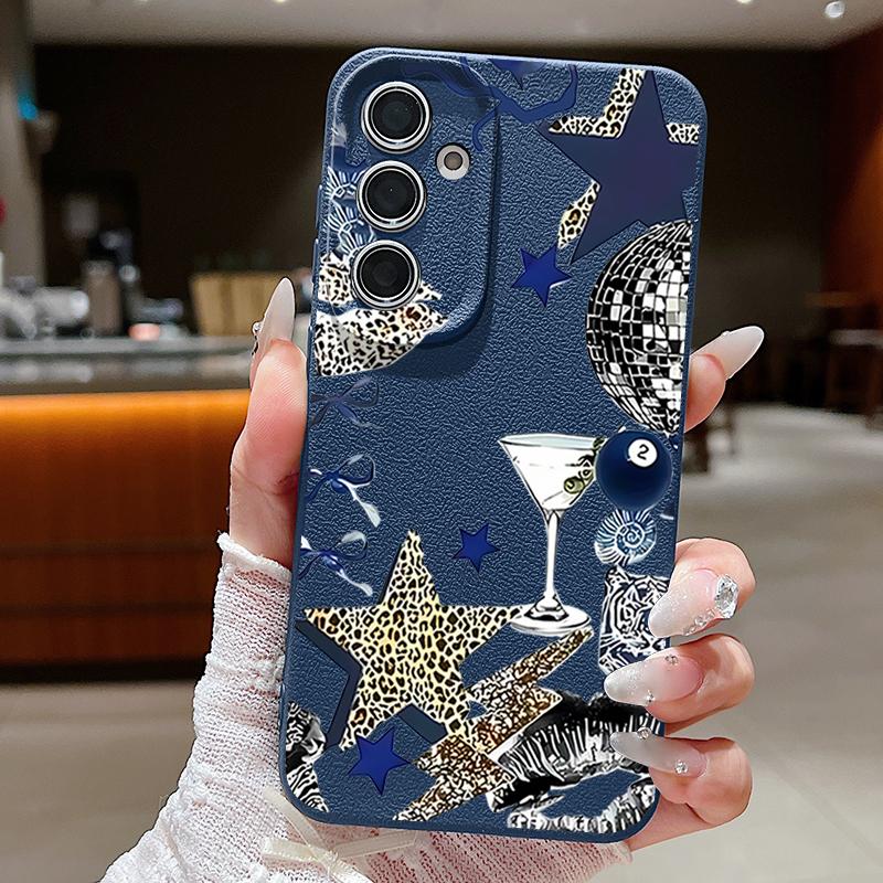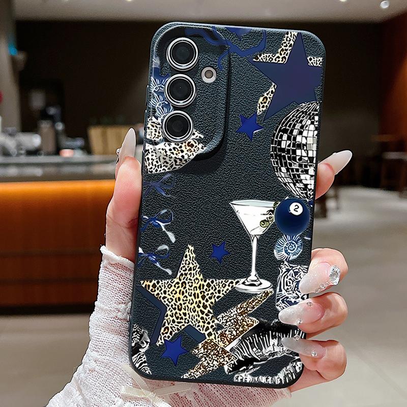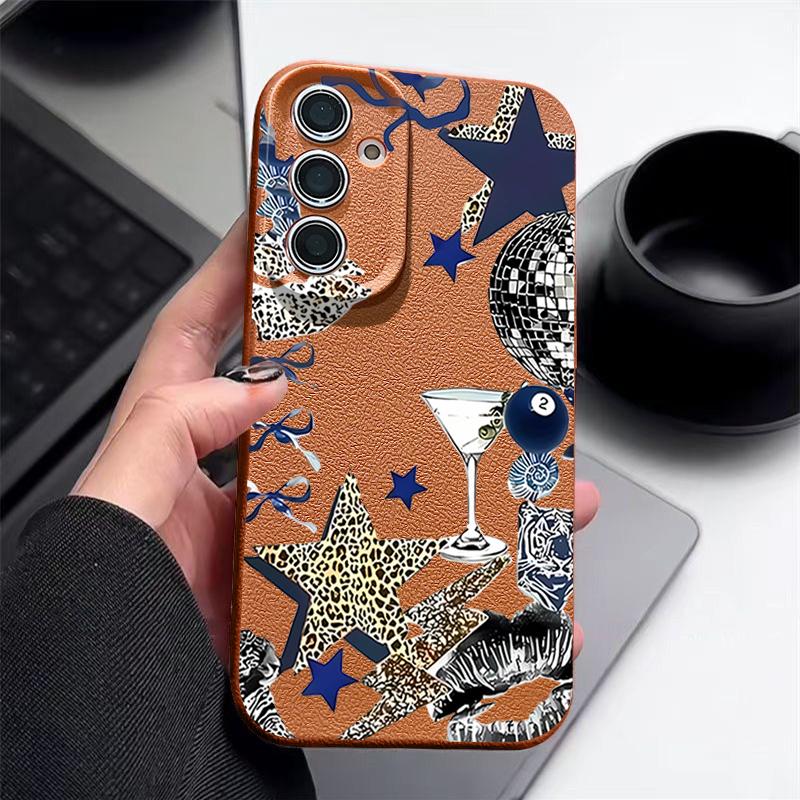 Чехол с узором "Леопардовая Звезда Диско-Шар" Для Samsung Galaxy A57 A56 A55 A54 5G A37 A36 A35 A34 A17 A16 A15 A14 Кожаная Текстура Силиконовая Крышка