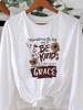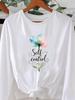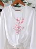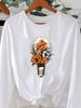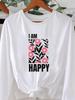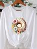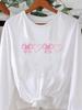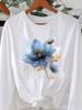 (Азиатский размер) Футболка с длинным рукавом Футболка с круглым вырезом Принт осень зима весна Женский тренд Цветочный тренд Одежда Повседневная Мода Топ Графические футболки