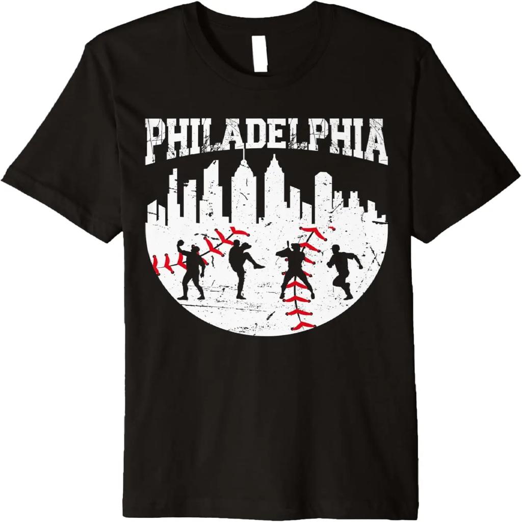 Vintage Philadelphia Skyline Philly Cityscape Baseball Fans Premium T-Shirt — купить товар онлайн с бесплатной доставкой по всему миру!
