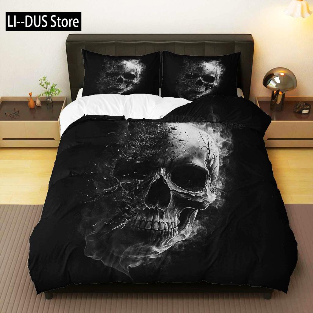 Duvet Cover Set Halloween Smoke Dark Horror Theme Halloween Bedding Set Perfect For Bedroom Living Room Photography Decoration.
