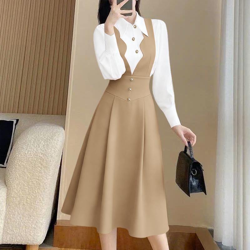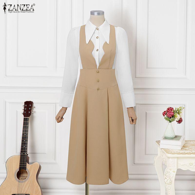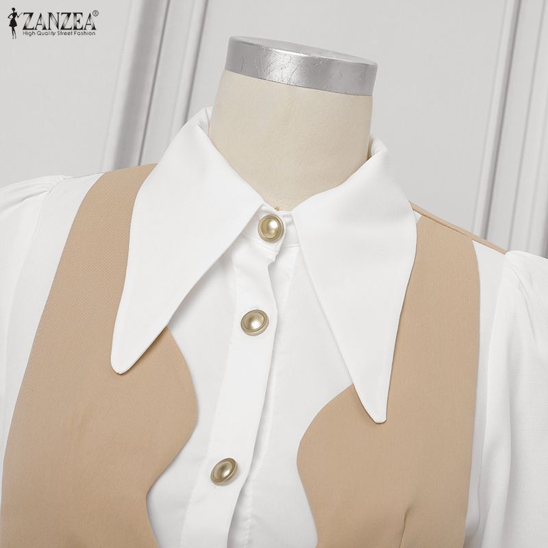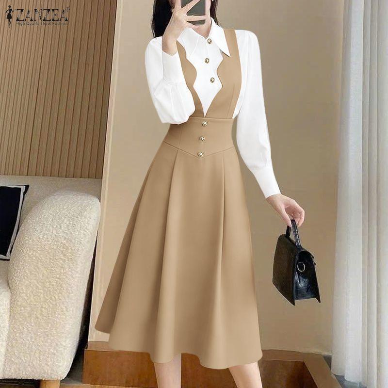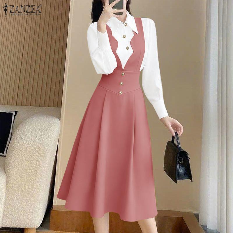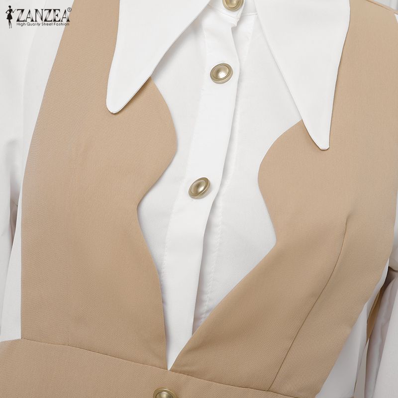ZANZEA Женское классическое платье с отложным воротником, свободного кроя, повседневное, с длинным рукавом, пэчворк