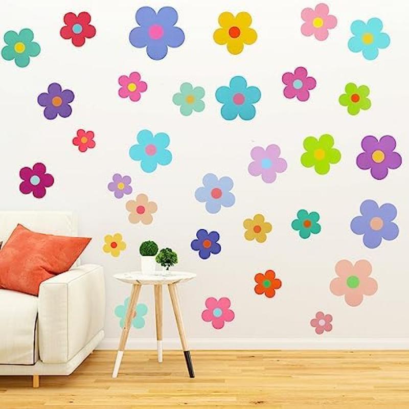 63 штуки Цветочные наклейки, Цветные настенные наклейки для комнаты девочки, Самоклеящееся boho настенное искусство для детской, Декор спальни