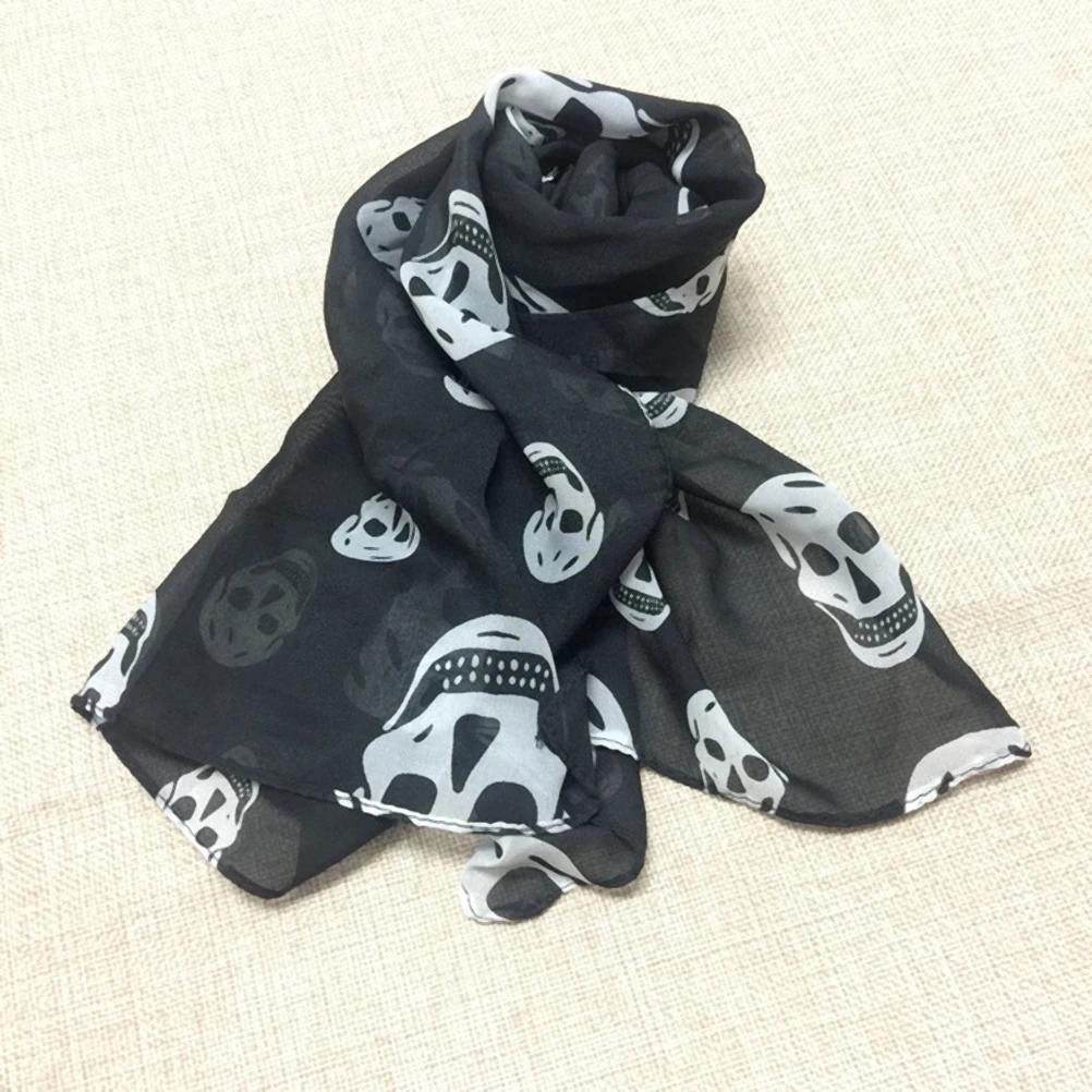 Длинный шарф-платок с черепами для женщин, шифоновый платок-шарф, повязки на волосы, голову, шею с черепами