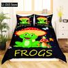 Комплект пододеяльников с изображением лягушки, милый мультяшный узор лягушки Kawaii, размер King Queen, полиэстер, чехол с наволочкой для детей и девочек