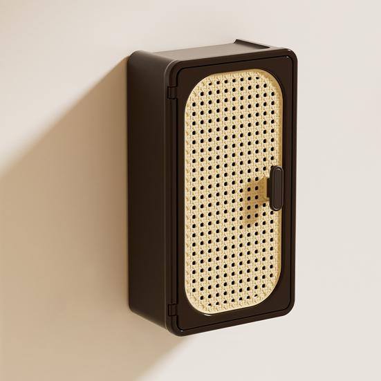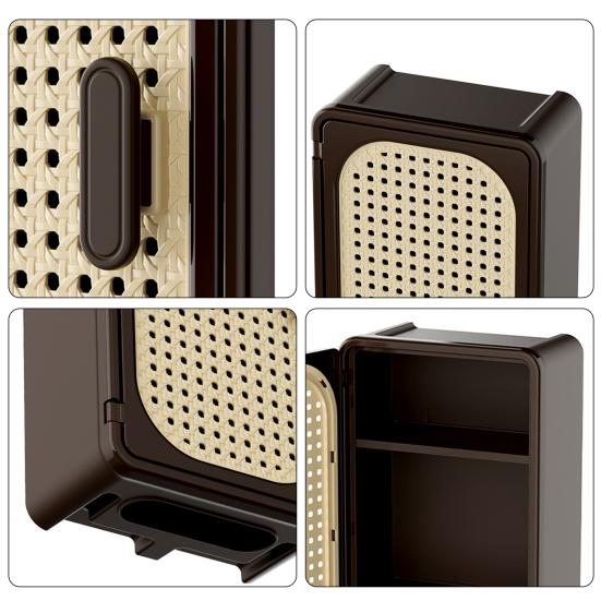 Изготовленный с текстурой натурального ротанга в сочетании с матовым черным металлическим каркасом, этот шкаф для хранения служит стильным настенным декором, который дополняет скандинавский и минималистичный домашний стиль.. Устойчивый к влаге и легко чистящийся, он подходит для влажных помещений, таких как ванные комнаты.. Помимо хранения, он служит держателем для салфеток на нижней полке, предлагая и красоту, и практичность в одном компактном дизайне.