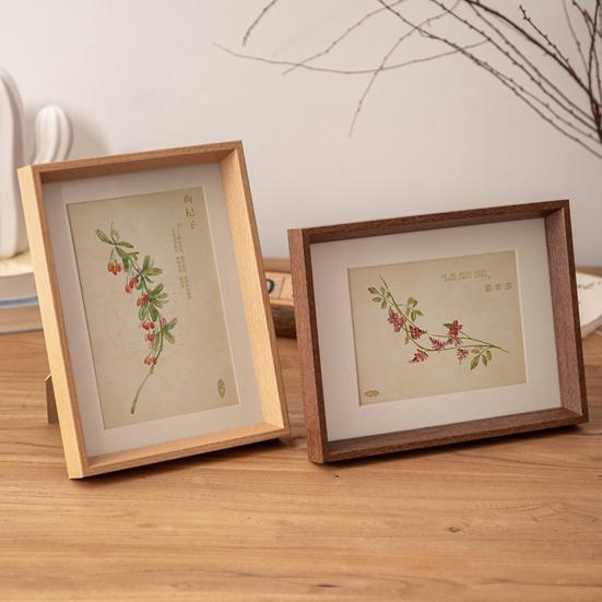 Фоторамка в китайском стиле, винтажная, с цветочным узором, мини-фоторамка, деревянная, настольная, для настенного декора