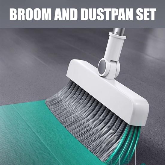 An adjustable long handle ensures comfortable use for most heights, eliminating the need to bend over. The upright broom and dustpan latch design allows convenient wall hanging or compact storage in tight spaces.