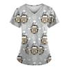 Women's Fashion Christmas Printed Short Sleeve V Neck Pattern Tops Pocket Working T-shirts