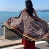 180Cm Leopard Print Flower Ethnic Style Scarf For Women'S Summer Sun Protection Silk Scarf, Paired With A Shawl Cape Beach Scarf