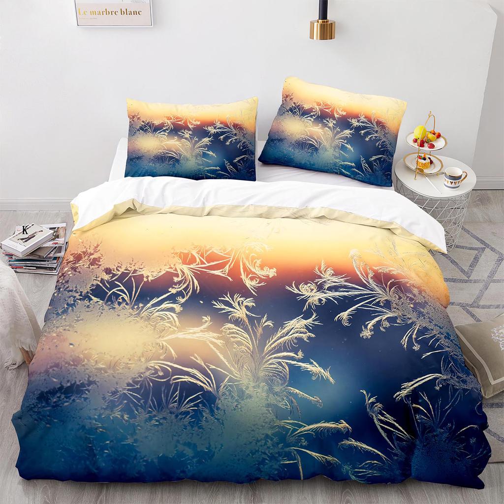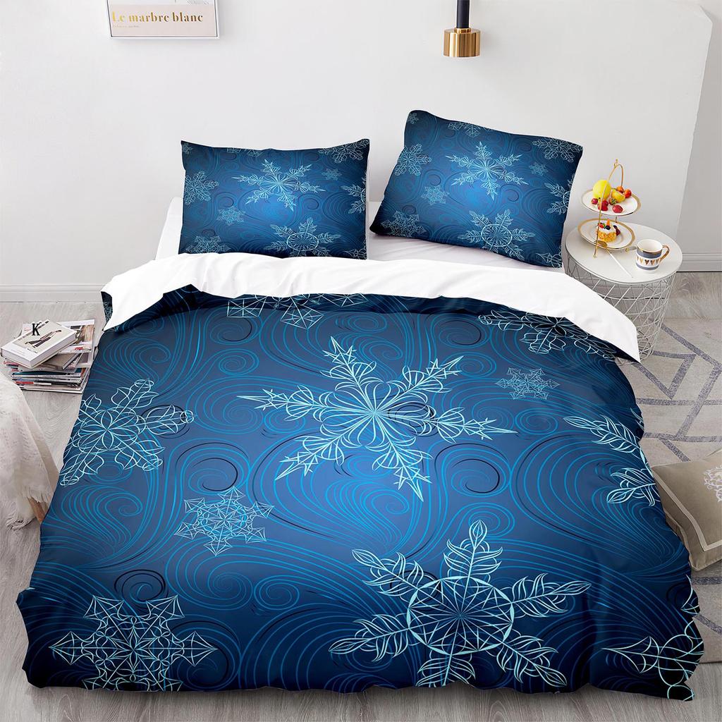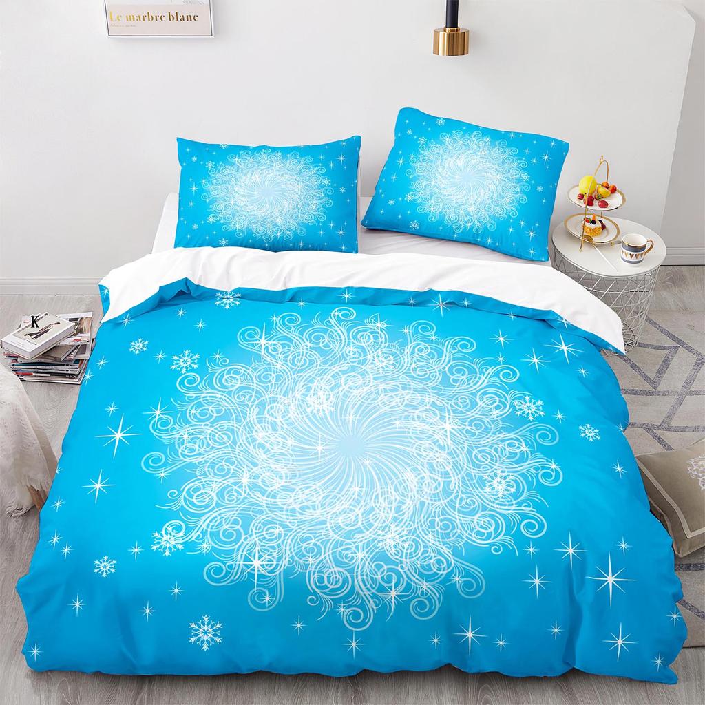 3D Snowflake King Queen Duvet Cover Romantic Purple Snow Landscape Bedding Set For Kids Teens Adults Christmas Soft Quilt Cover