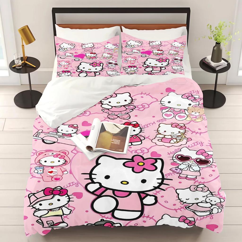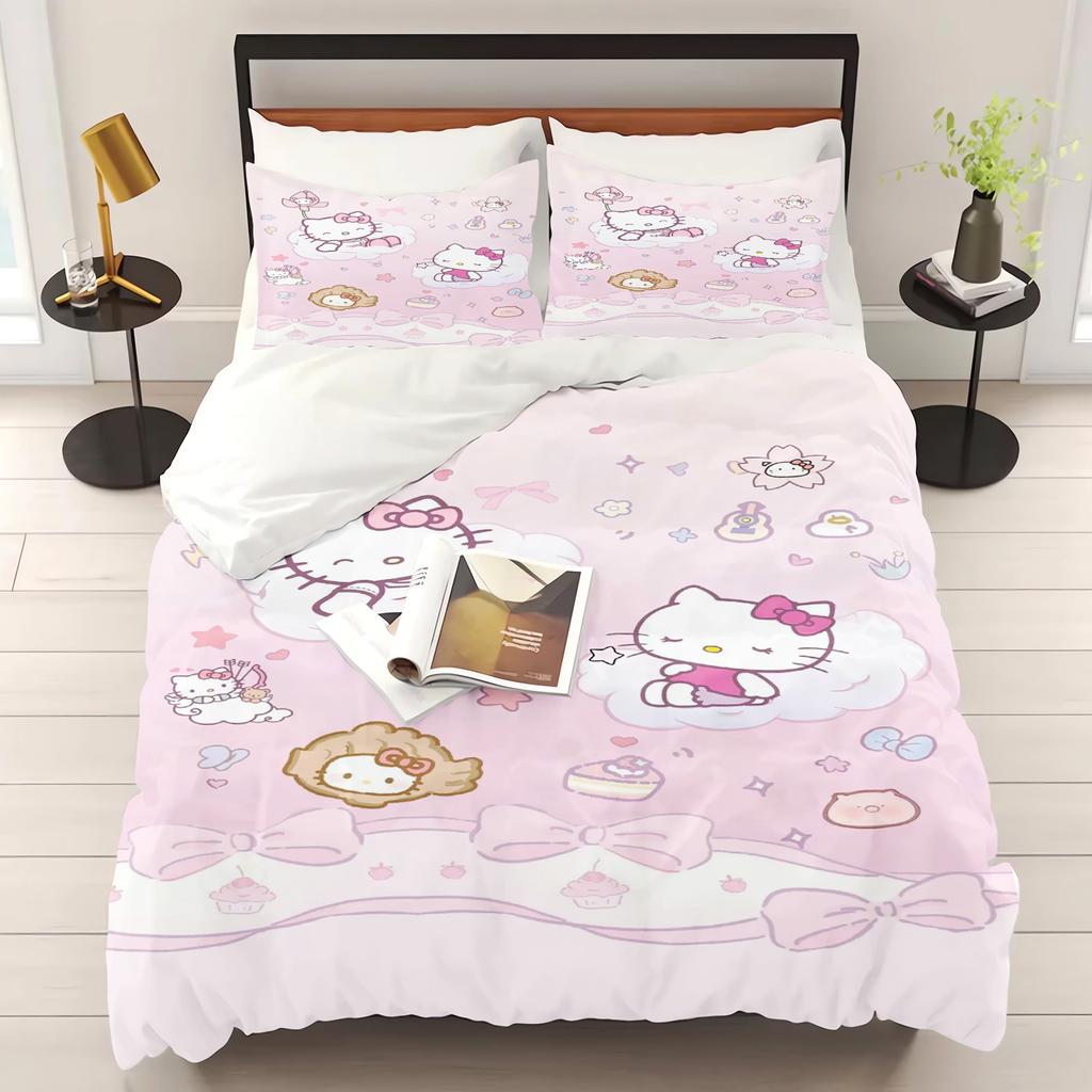 Hello Kitty Printed Bedroom Bedding Set Duvet Cover Christmas Gifts Comforte Cartoon With Pillowcase