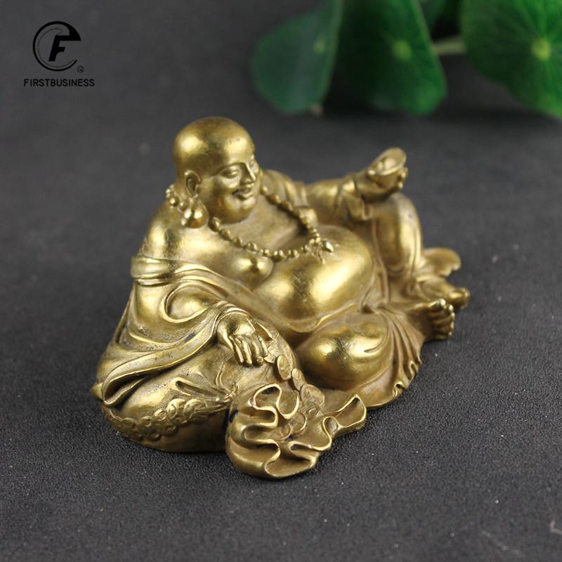 Copper Maitreya Buddha Figurines Brass Statue Ornaments Home Decor Craft for Living Room Office Desk Decorations Amitabha Buddha
