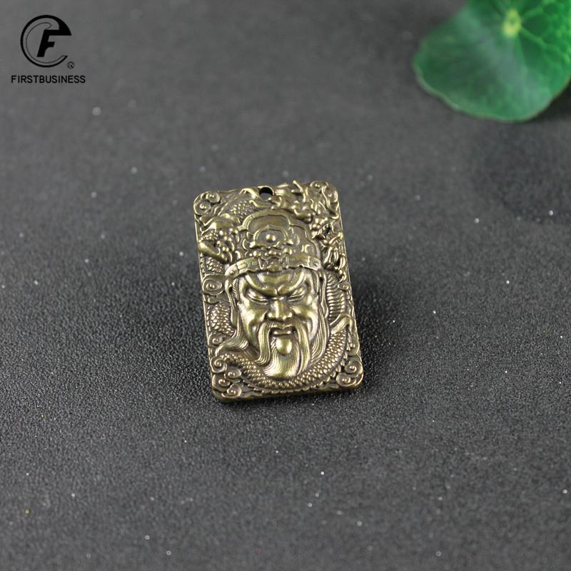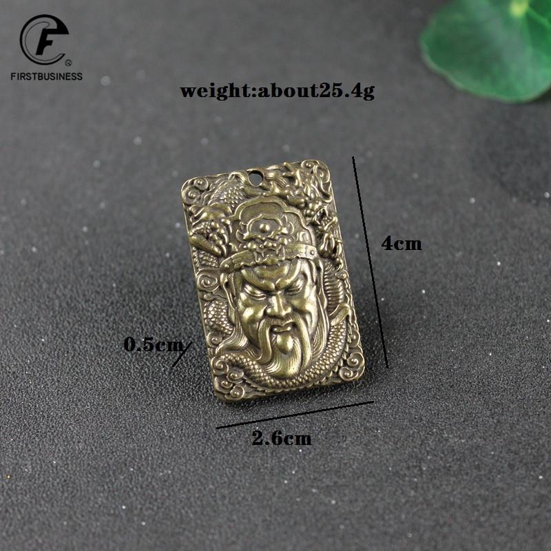 Brass Guan Gong Head Statue Keychains Pendants Handmade Vintage Chinese God of Wealth Pure Copper Keychians Car Hanging Jewelry