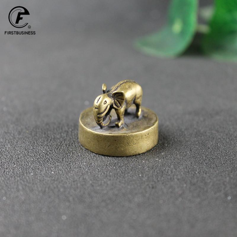 Сплошная статуэтка-печать слона из чистой латуни Китайский Фэн-шуй Счастливые украшения для дома Фигурки животных Милый Декор для стола