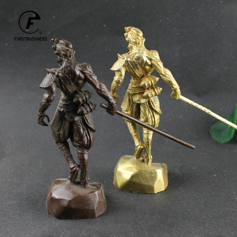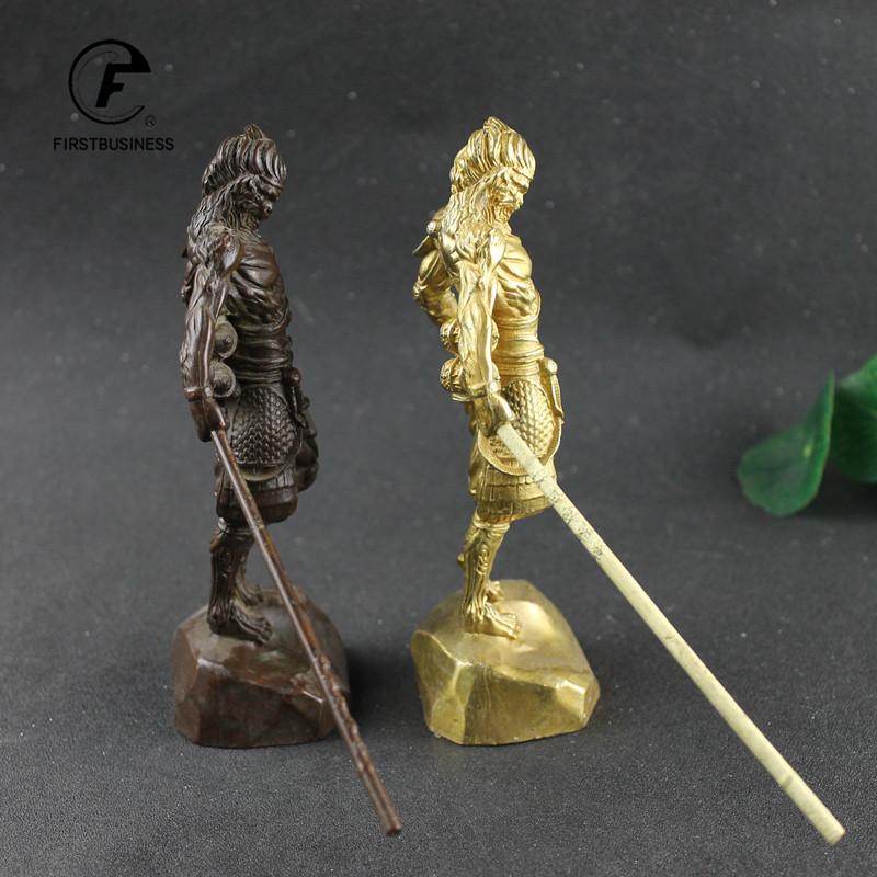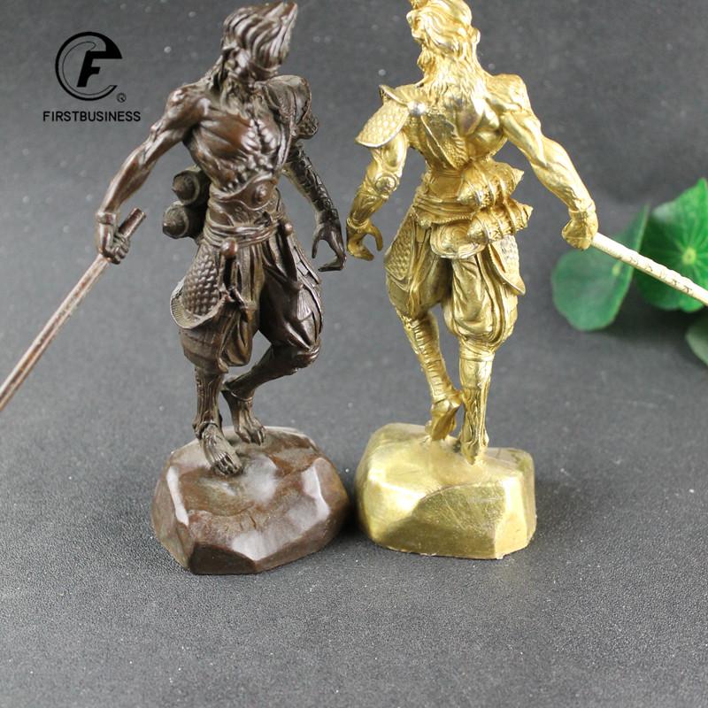 Antique Monkey King Sun WuKong Statue Gold Color Office Desk Decoration Figurines Miniature Brass Plated Car Ornament Home Decor