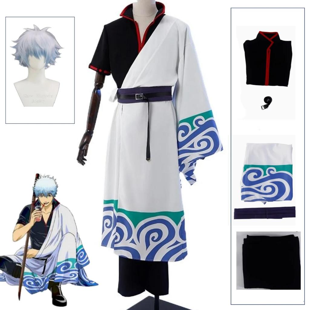 Gintama Аниме SakMiGintoki Костюм для косплея, Парик, Кимоно, Топ, Брюки, Боди, Конвенция, Хэллоуин, Рождественское мероприятие, Подарок