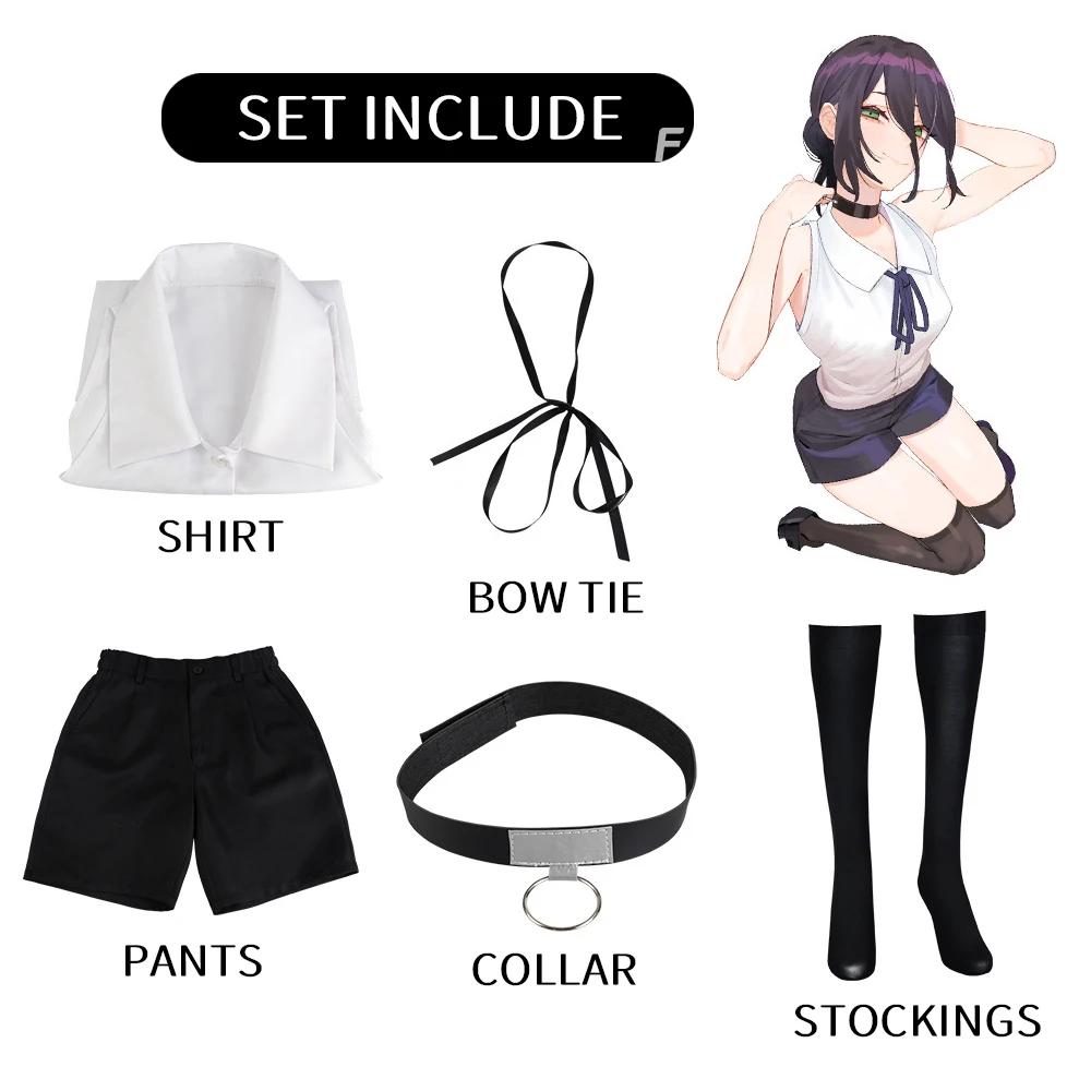 Костюм для косплея Резе Человек-бензопила Наряды Синий костюм Рубашка Галстук Шорты Кольцо на шею Женский Аниме Униформа Хэллоуин