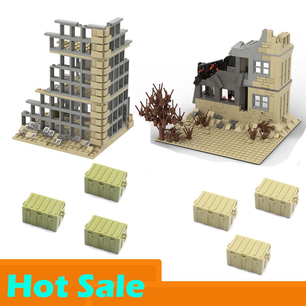 Заброшенные Разрушенные Здания MOC Военная База WW2 Наборы Строительных Блоков для Сборки Сцен Части Подарок для Фигурок Солдат Армии Игрушки Дети