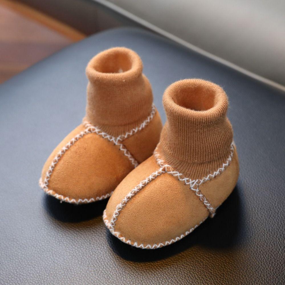 Soft Baby Warm Boots Sheepskin Wool Sewn Indoor Walking Socks Cute Anti-slip Footwear