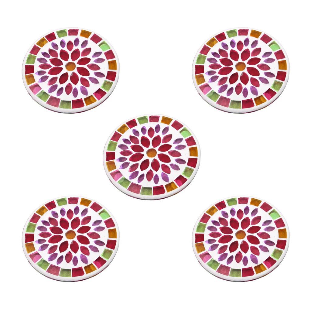 Fourcart Cute Handmade Glass Coasters Flower Pink x Set [Mosaic Coaster] 5-Piece — купить товар онлайн с бесплатной доставкой по всему миру!