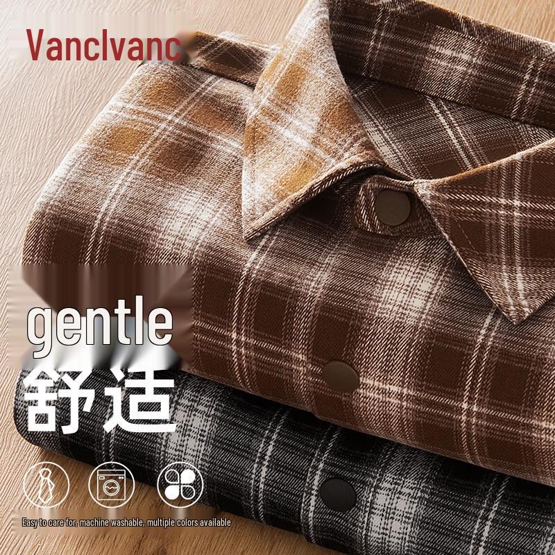 Мужская фланелевая клетчатая повседневная рубашка с длинным рукавом VANCL
