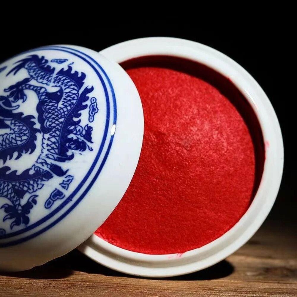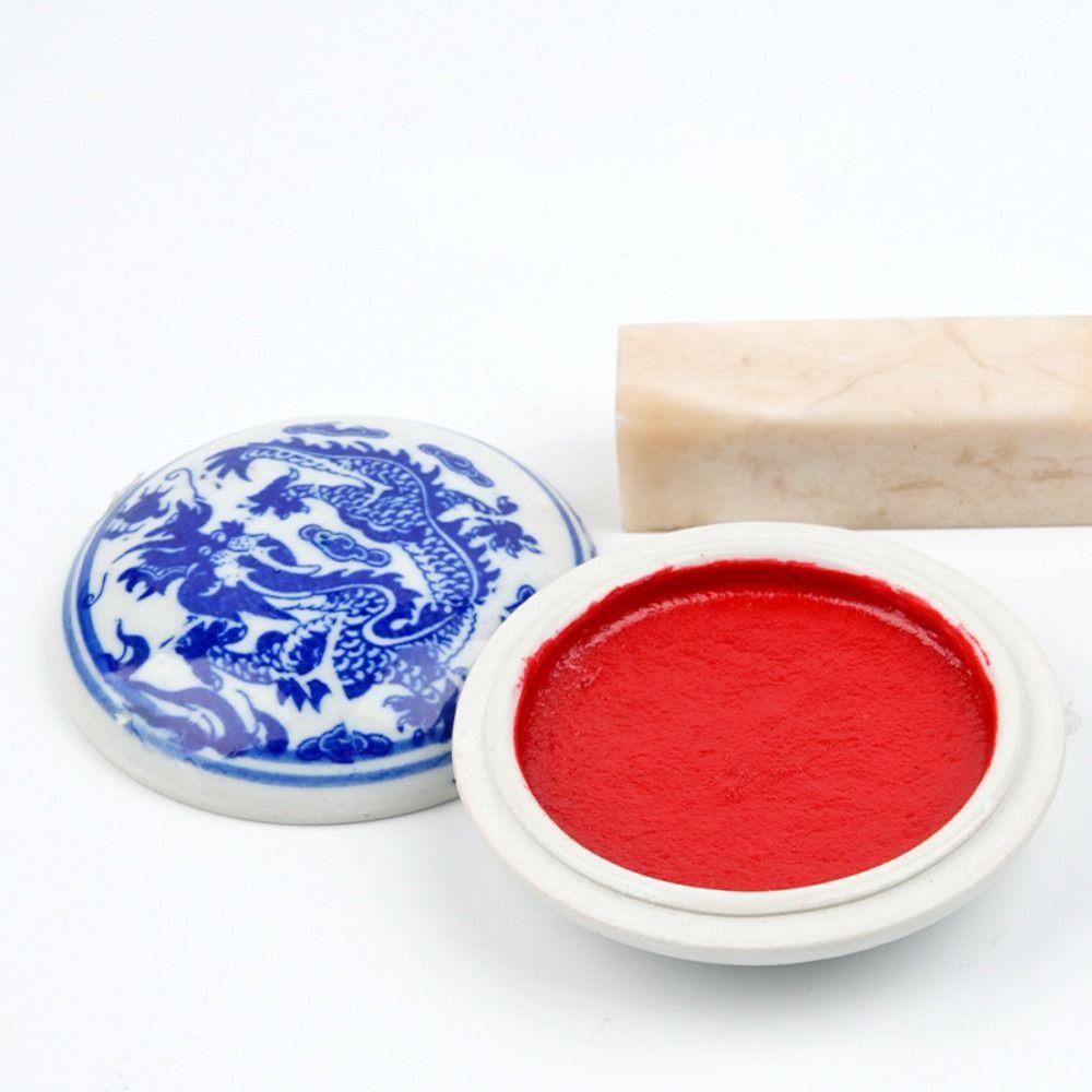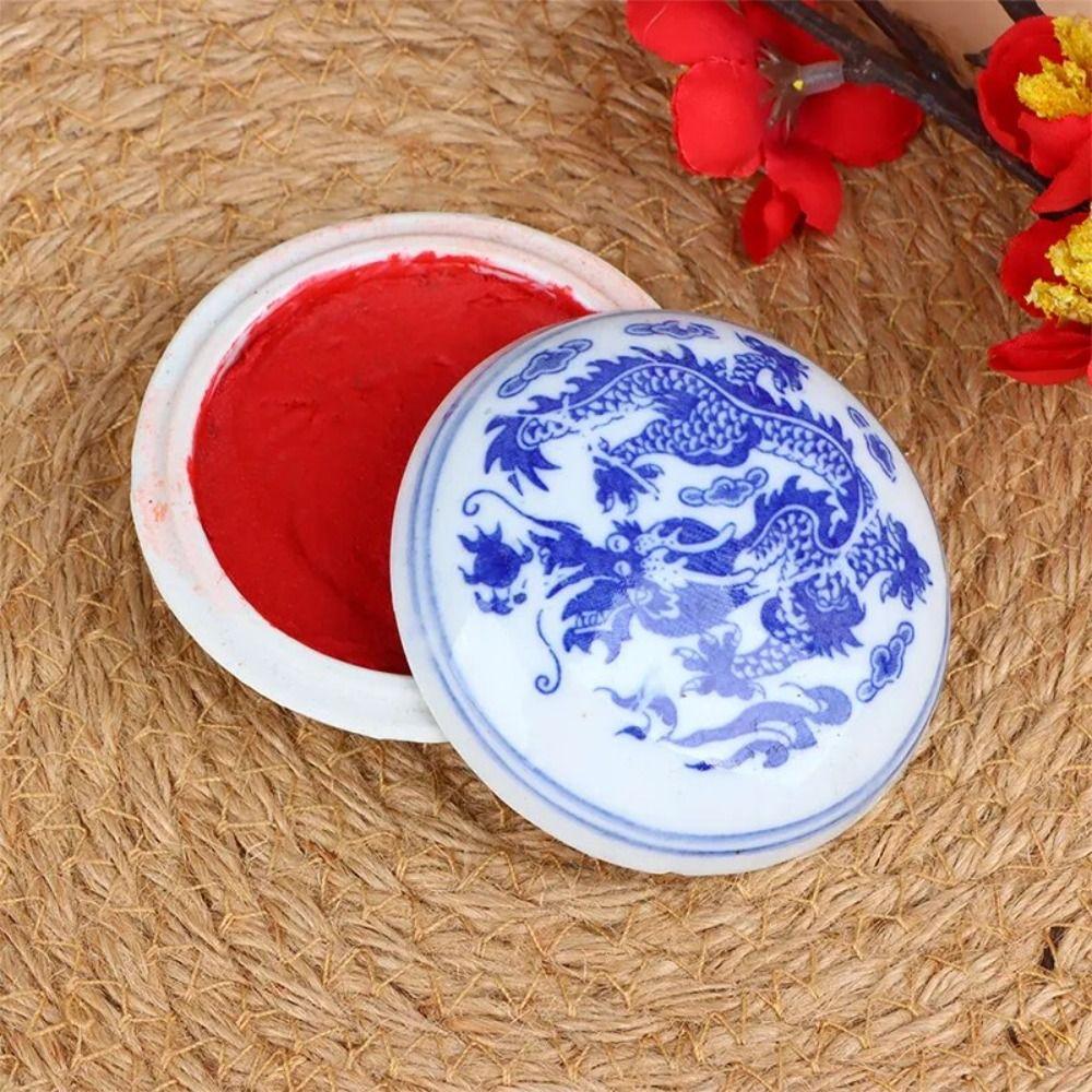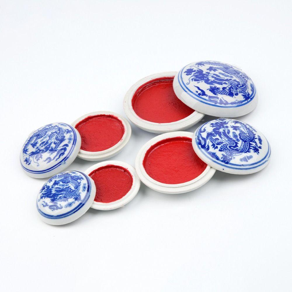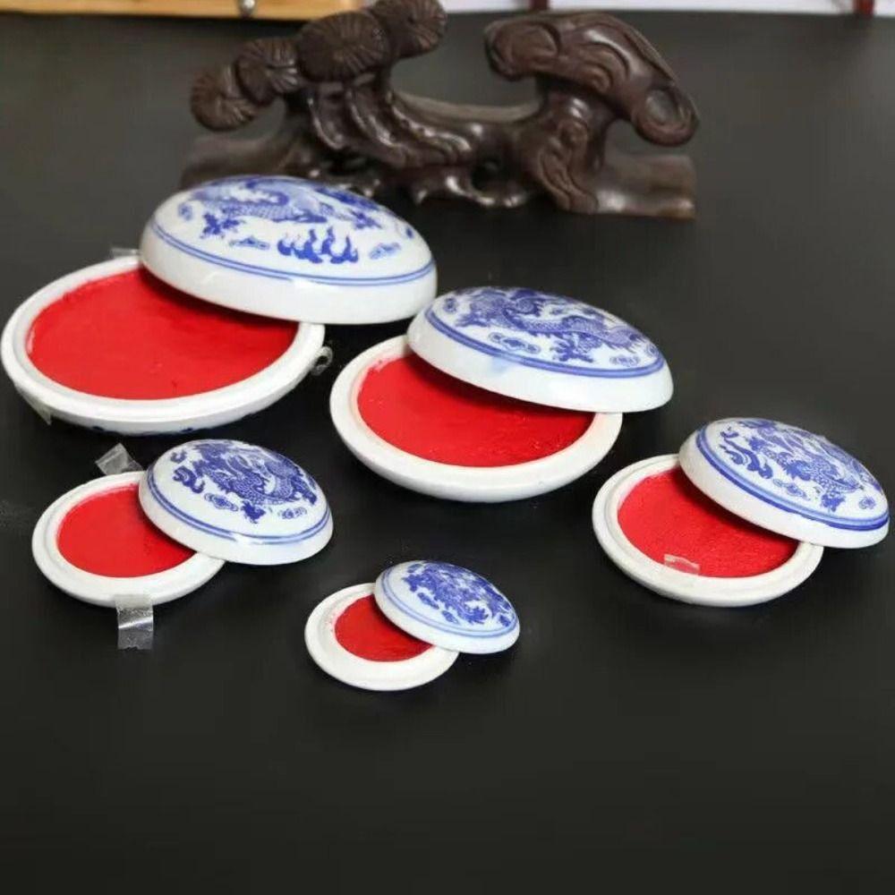 Керамическая чернильница в сине-белом цвете в древнем стиле Китайская красная чернильница для печати Декоративные картины