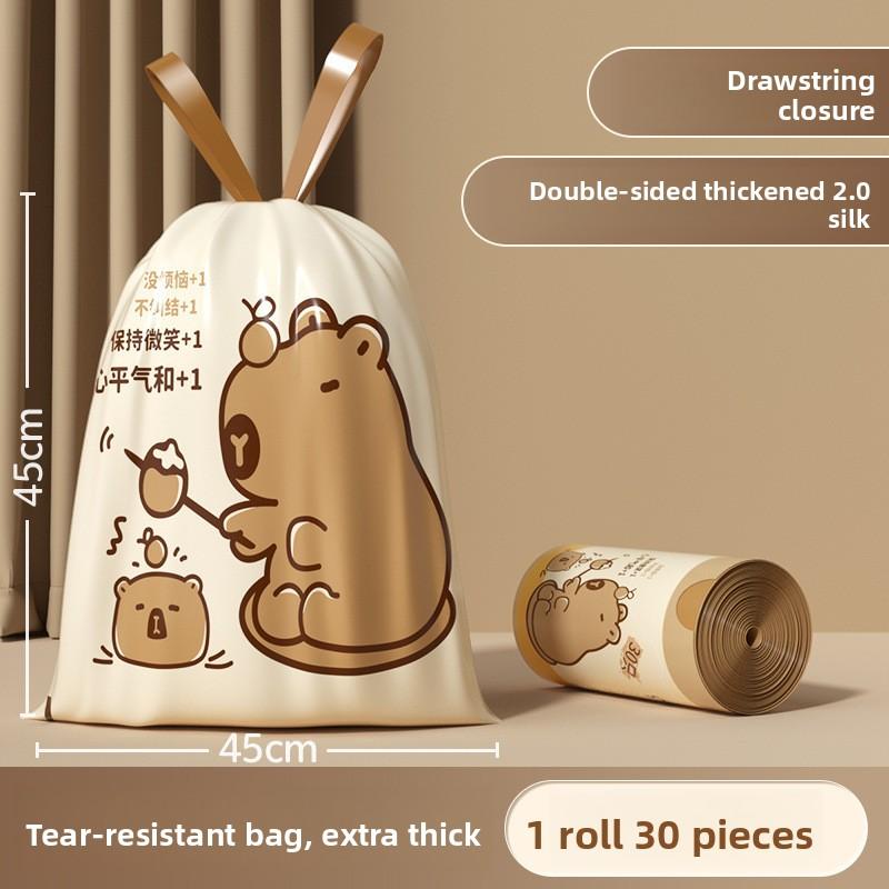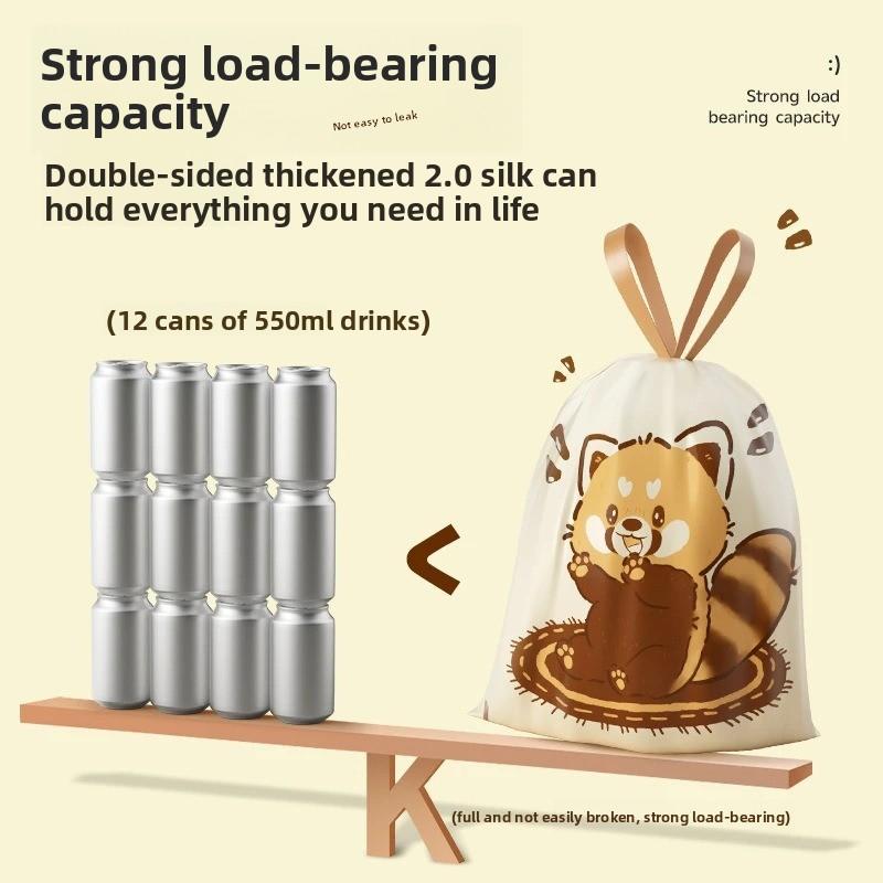 Бытовой мешок для мусора с завязками, не рвущийся, плотный и прочный, дизайн в мультяшном стиле с маленьким енотом, милый стиль, сумка для уборки кухни