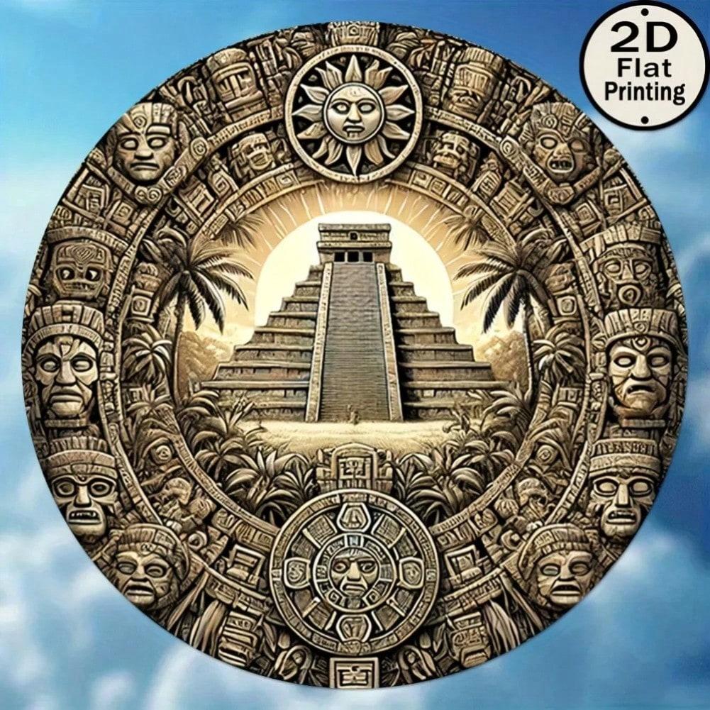 Metal Vintage Wall Art Round Maya Aztec Wall Decor Pyramid of Sun Home