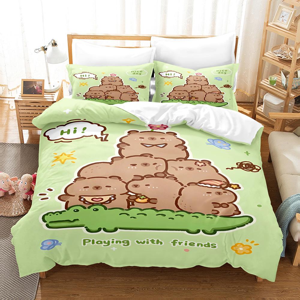 Постельное белье с капибарой Роскошный аниме-комплект Капибара King Size Пододеяльник Наволочка Детская спальня Милый мешок для кровати Наволочка Детский подарок
