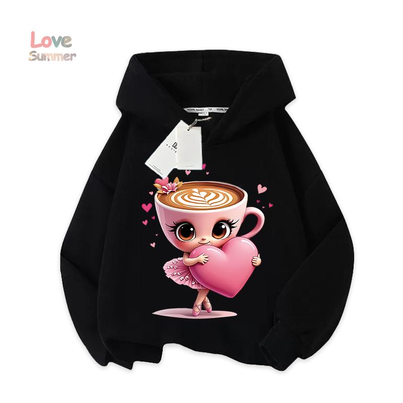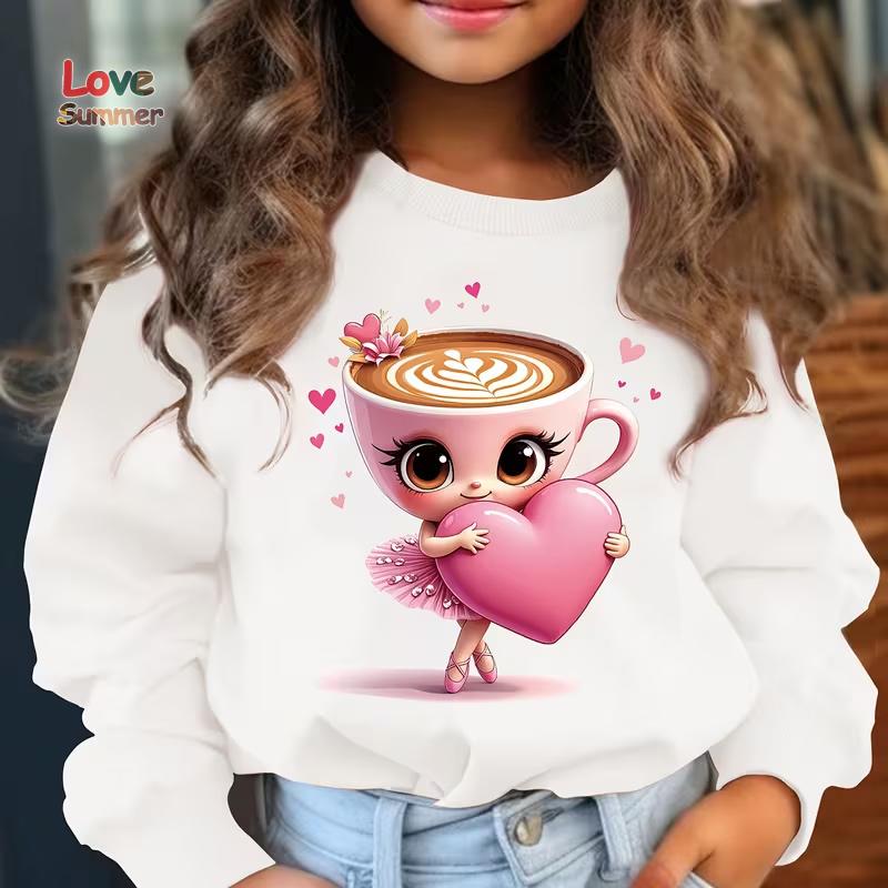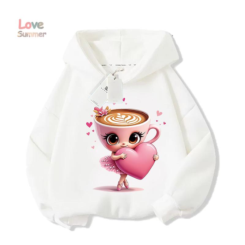 Итальянский Мозговой Гниль Сердце Капучино Балерина Худи Принт Повседневный С длинным рукавом Тонкий Пуловер Носить Милый Графический Удобный Материал