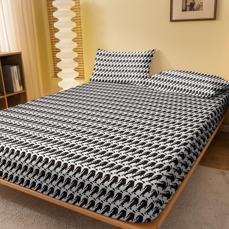 Black 1 Vertical Patterned Frosted Bedsheet, Bedroom Printed Bedspread, Bedding Excluding Pillowcases
