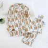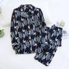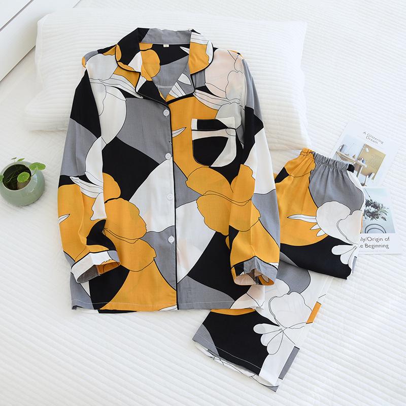 Теплый сезон и лето Хлопковый пижамный костюм Большой размер Домашняя одежда Мягкий с длинным рукавом Геометрический узор