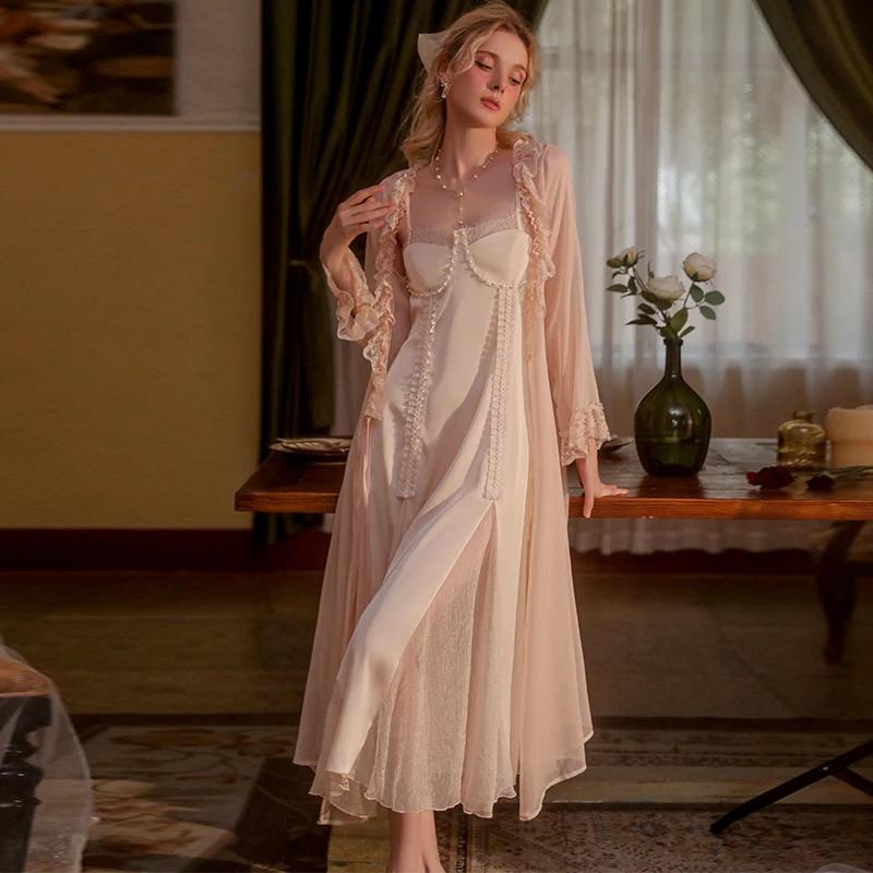 Сексуальная Пижама Женская Повседневная Одежда Весна и Лето Сладкое Платье-Пижама Сет Сетчатое Кружевное Сексуальное Ночное Платье