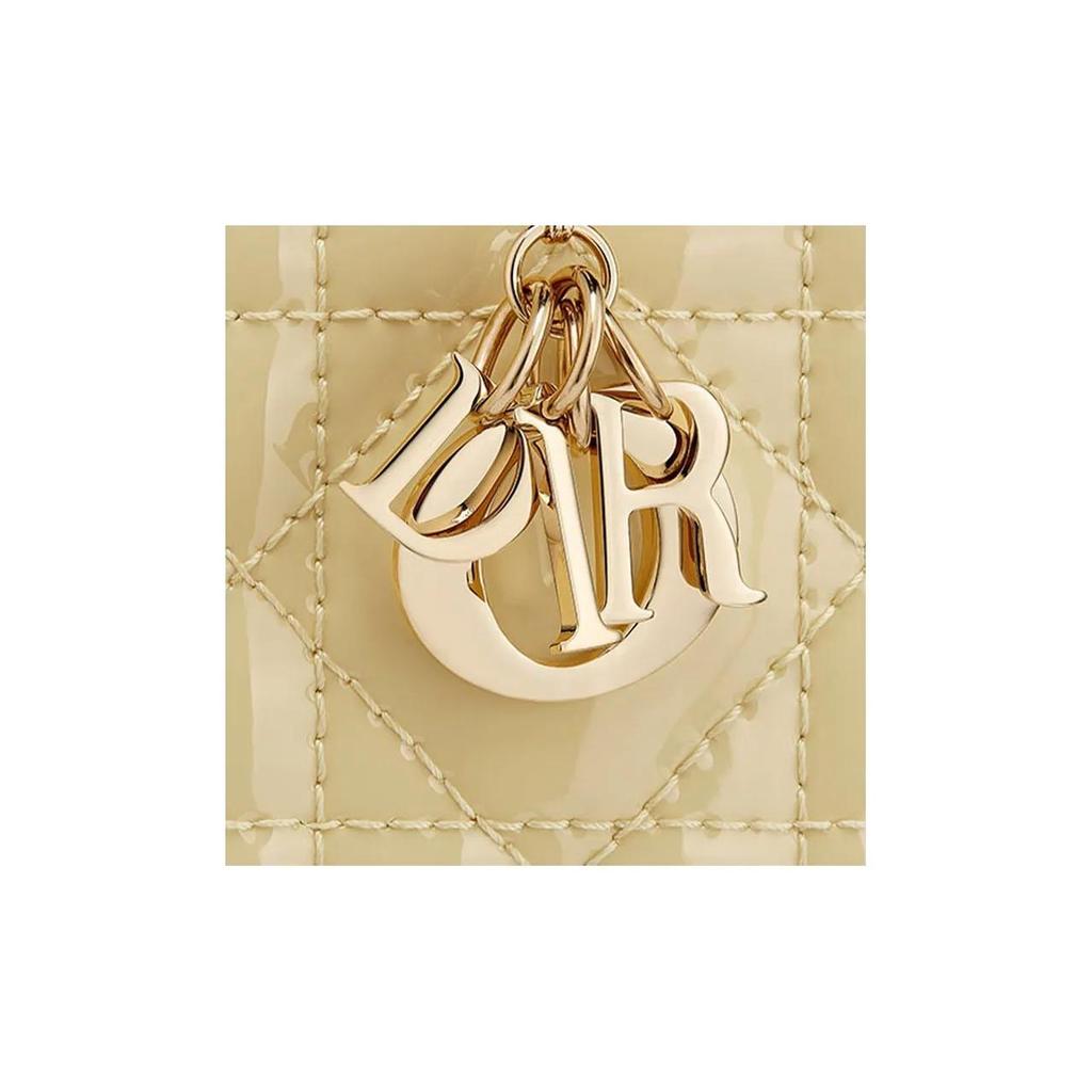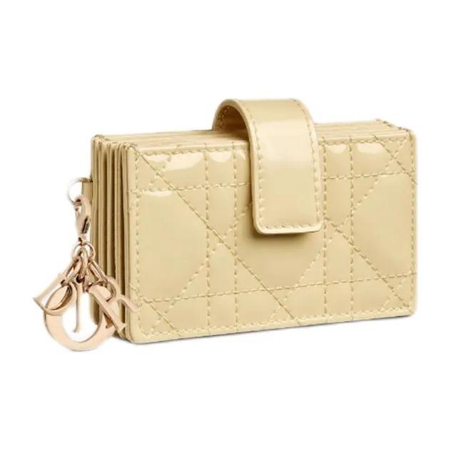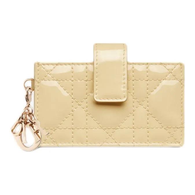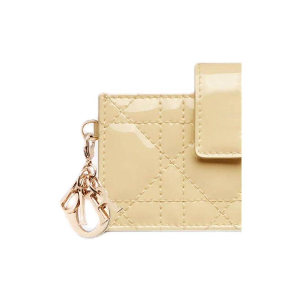 Dior LADY Dior Collection Patent Leather Calfskin Canvas Check Pattern 5-Card Slot Card Holder & Coin Purse Women's Style Light Yellow
