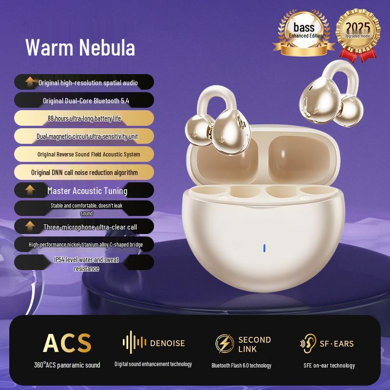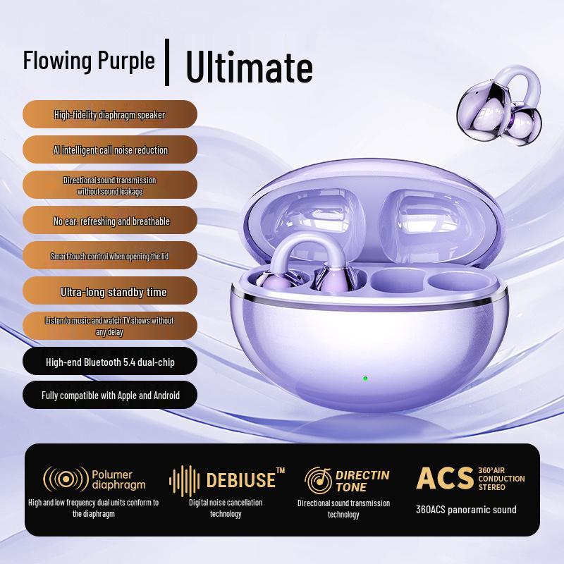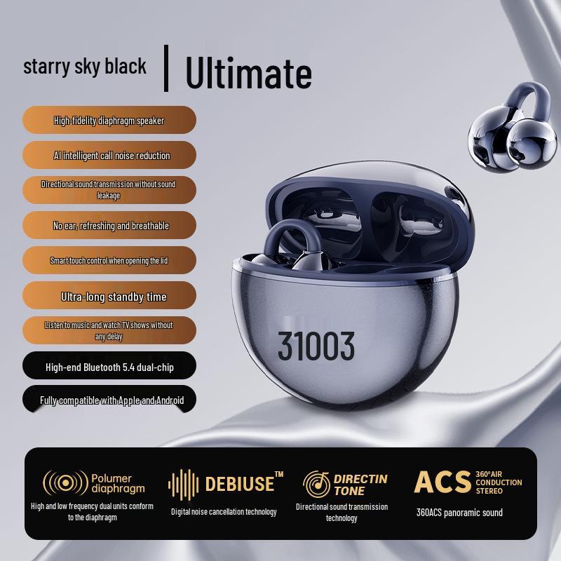 M91 Bone Conduction Open-Ear Bluetooth Headphones, Clip-On, Digital Display, Long Battery Life, Compatible with Huawei, 2025 Model.
