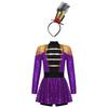 Детский костюм Циркового Мастера на Хэллоуин: Блестящий боди с пайетками, мини-цилиндр и повязка на голову с перьями для легкого переодевания и ролевых игр