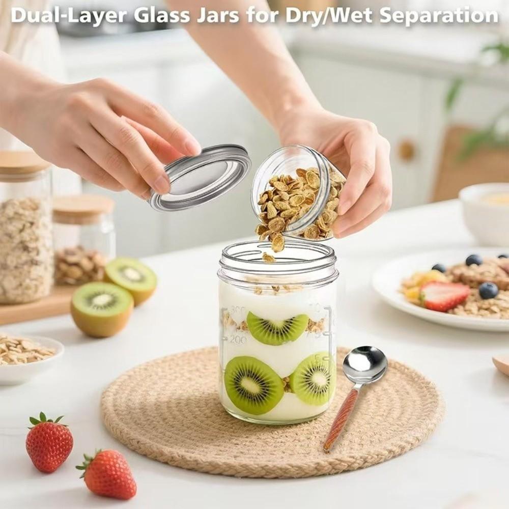 Dual-Layer Overnight Oats Containers Dry Wet Separation Mason Jars Jam Salad Honey