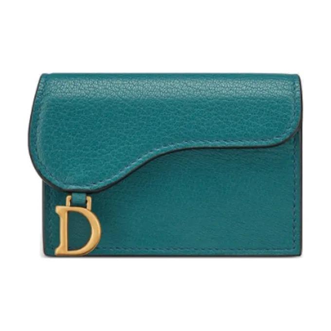 DIOR Saddle Flap Wallet in Lambskin Leather for Women, Deep Sea Blue — купить товар онлайн с бесплатной доставкой по всему миру!