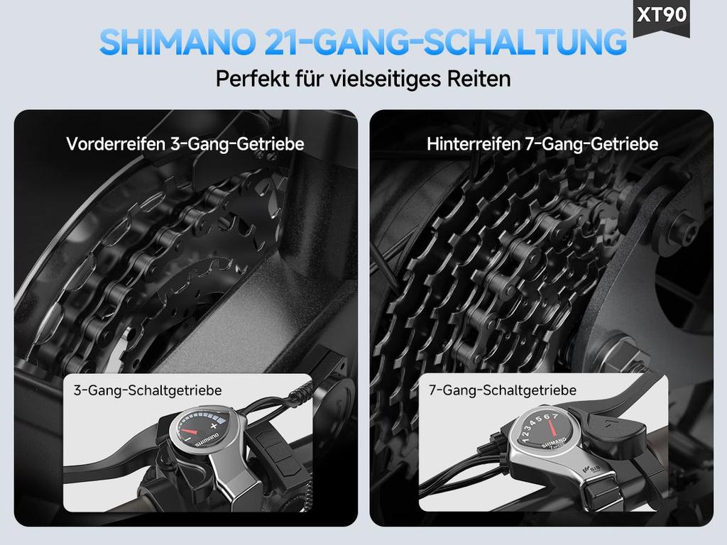 Master every landscape with a 21-speed Shimano electric bicycle. This versatile shifting system gives you precise control over your pedaling effort, seamlessly complementing the motor's power for a efficient and customizable ride on city streets or mountain trails.