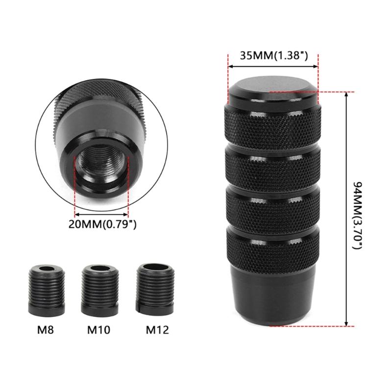 95MM Knurled Shifter Lever Knob Aluminum Shifter Knob with M8-M10 M12 Adapters