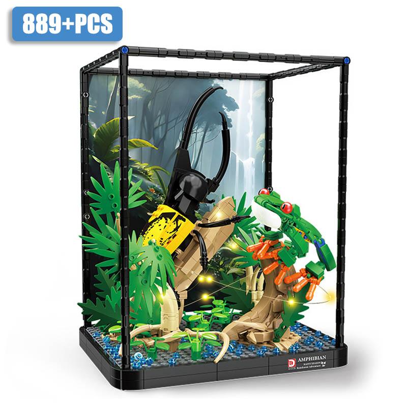 City MOC Tropical Rainforest Frog Insects Pet Box Building Blocks DIY Agalychnis Callidryas Dynastes Bricks Toys For Children